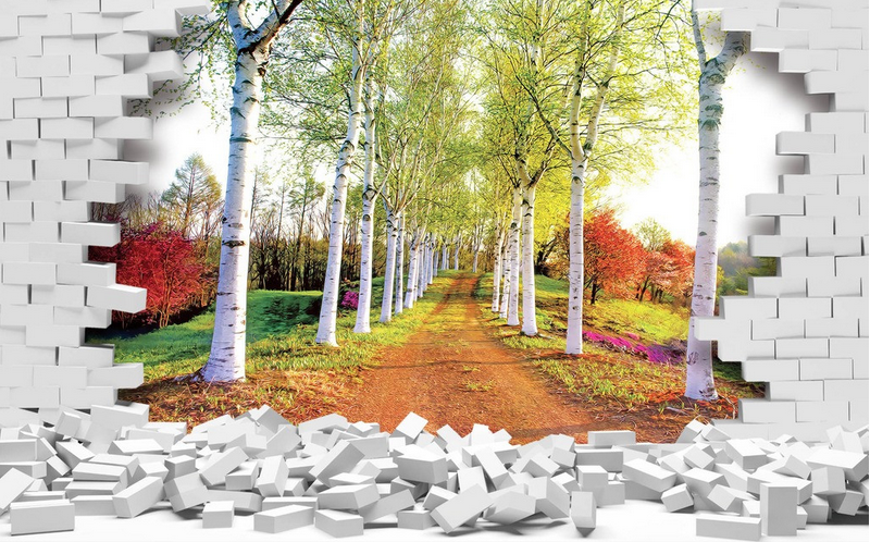 Align panel 2 to panel 1. Simply match the pattern of the mural (with 2cm overlap).No need to cut. Repeat for additional panels. Trim any ceiling and baseboard overage, lt's better to wipe the mural's surface with a wet cloth after the installation. Because it will make more sticky.