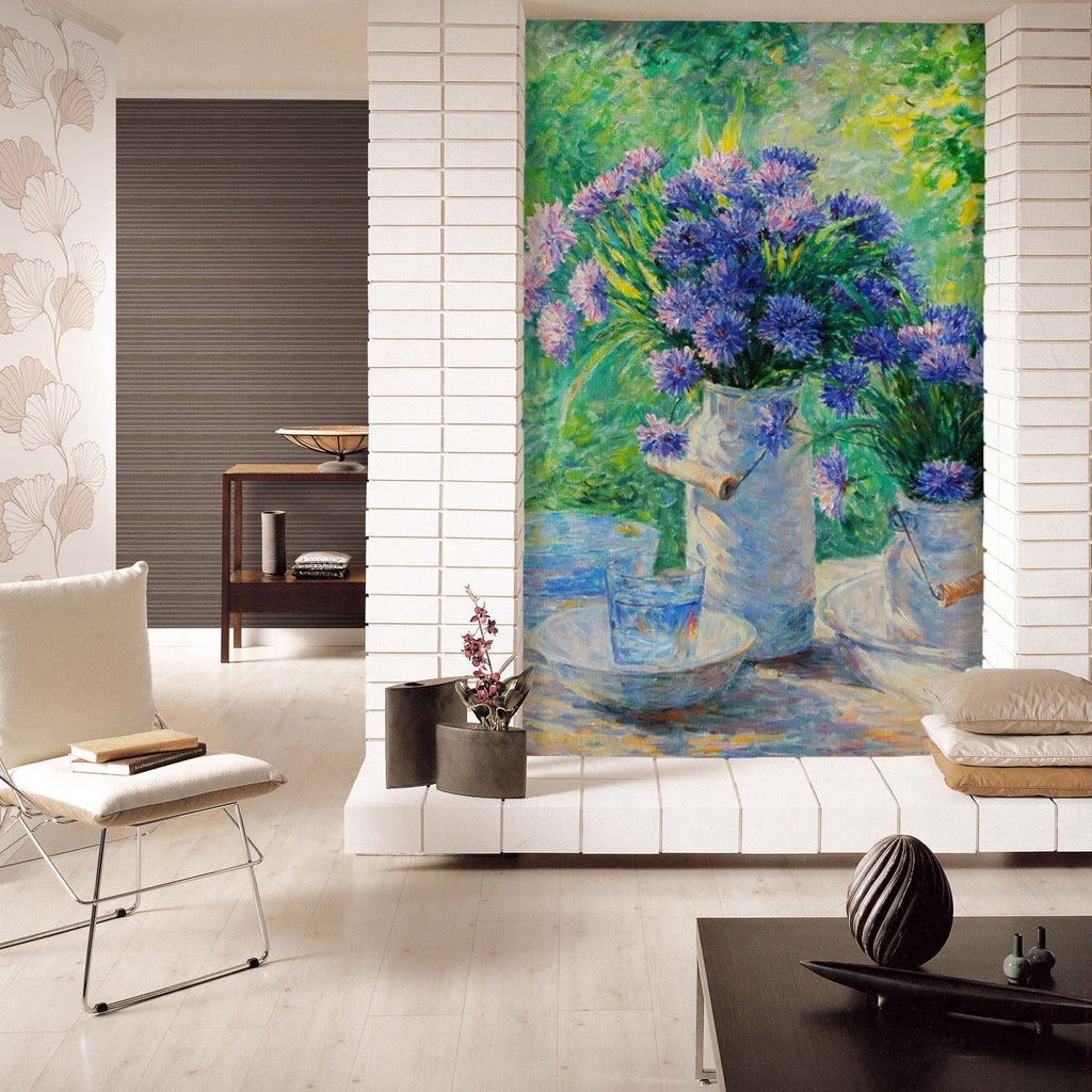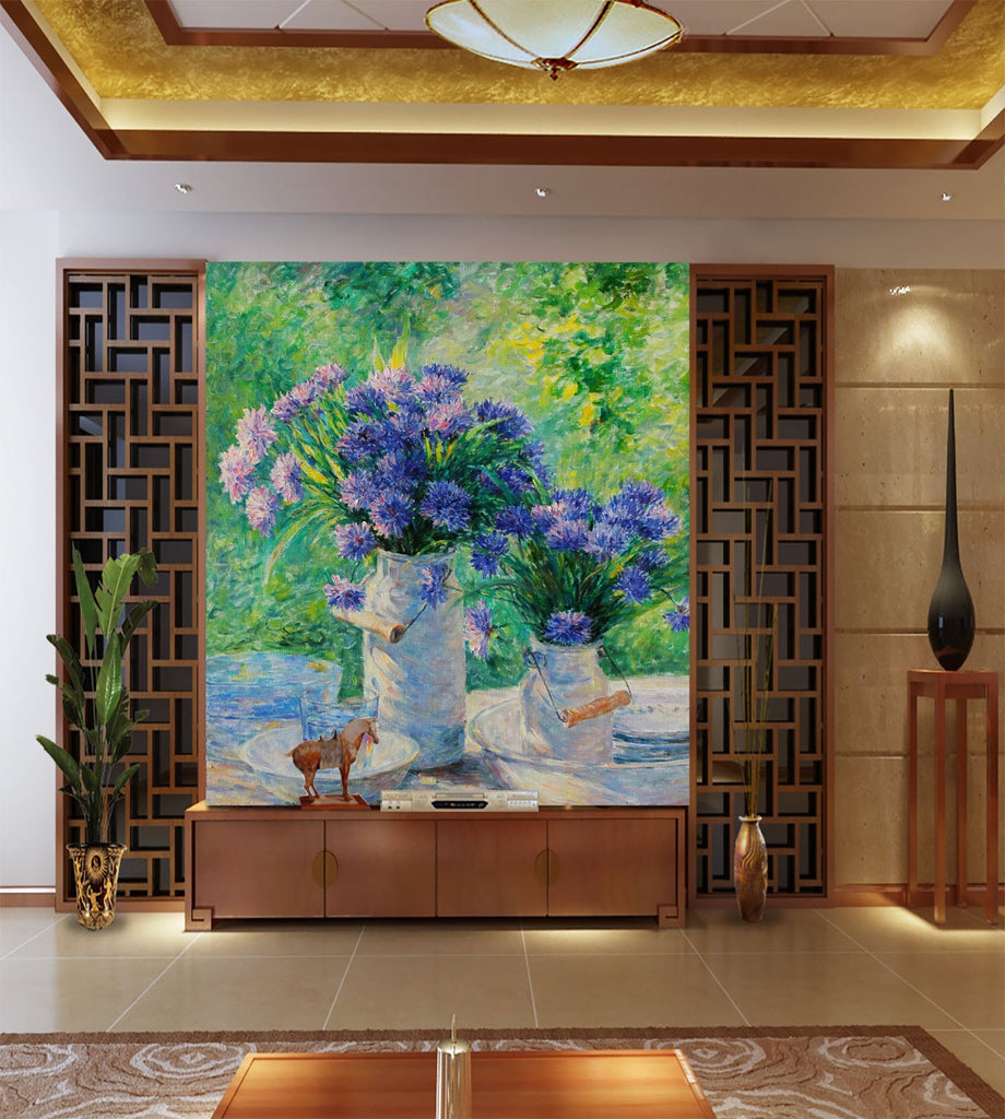 Make sure the wall surface is flat, clean and smooth. A clean and dry wall will help the adhesive from your wall mural to keep its stickiness. Put all panels on the ground, check the order. Measure and write down the dimensions of each panel. Mark vertical guidelines according to the panel's dimensions. Leave 2-3cm overlap between panels.
