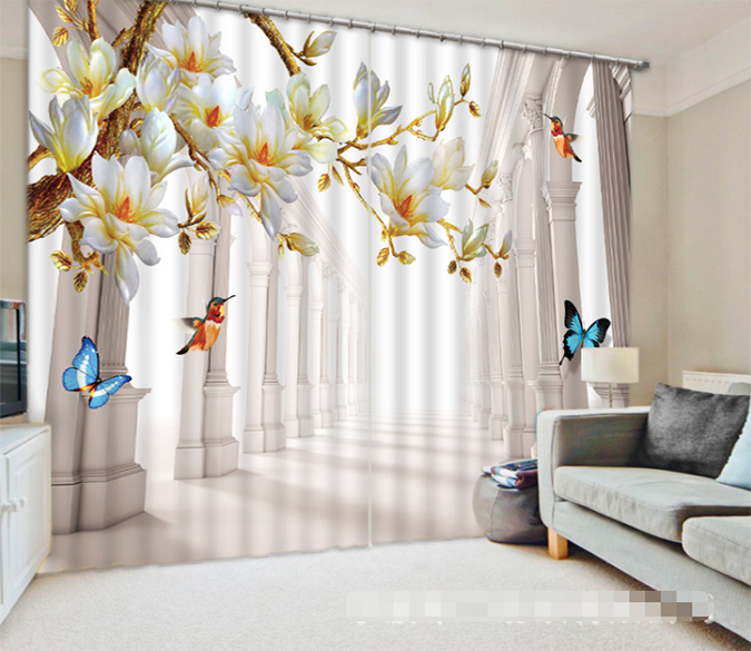 3D Aisle Flowers Butterflies Birds 1338 Curtains Drapes