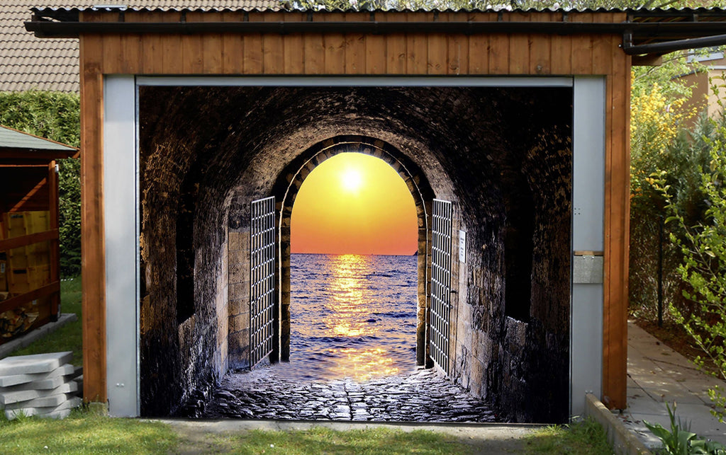 3D Gate Sea Sunset 468 Garage Door Mural