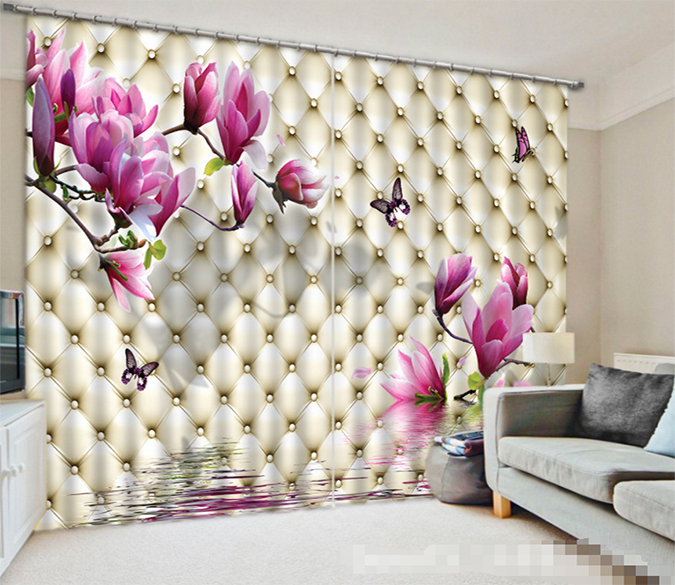3D Flowers And Oblique Grid 1070 Curtains Drapes