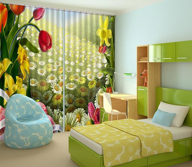 3D Bright Lush Flowers 147 Curtains Drapes
