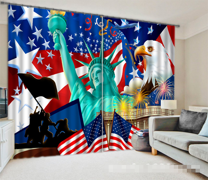 3D American Flag And Liberty Statue 1218 Curtains Drapes