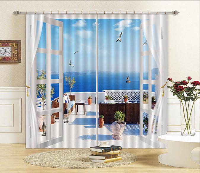 3D Balcony Lake Scenery 15 Curtains Drapes