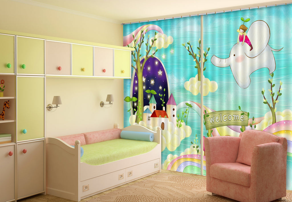 3D Elephant House 410 Curtains Drapes