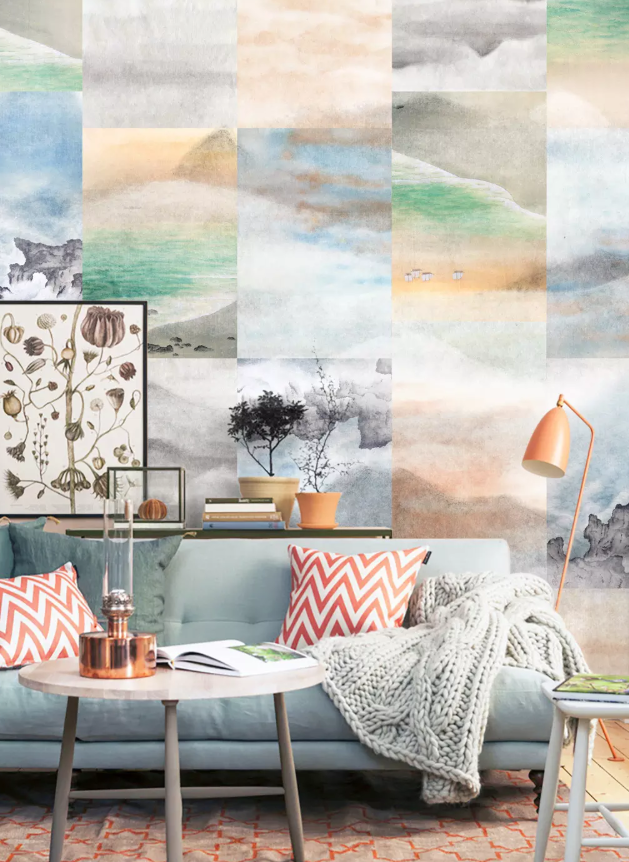 Make sure the wall surface is flat, clean and smooth. A clean and dry wall will help the adhesive from your wall mural to keep its stickiness. Put all panels on the ground, check the order. Measure and write down the dimensions of each panel. Mark vertical guidelines according to the panel's dimensions. Leave 2-3cm overlap between panels.
