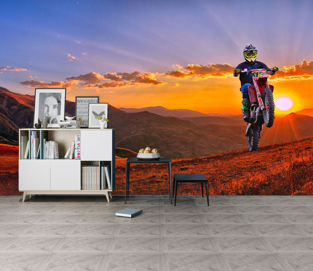 3D Motocross Sunset 119 Vehicle Wall Murals Zoe