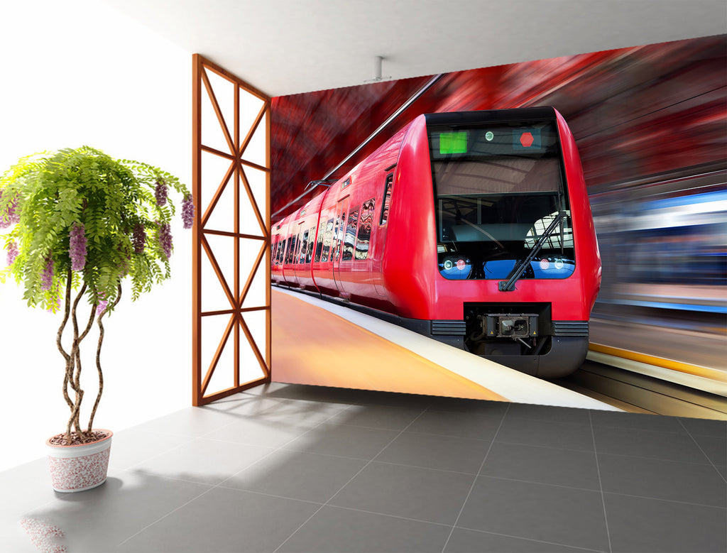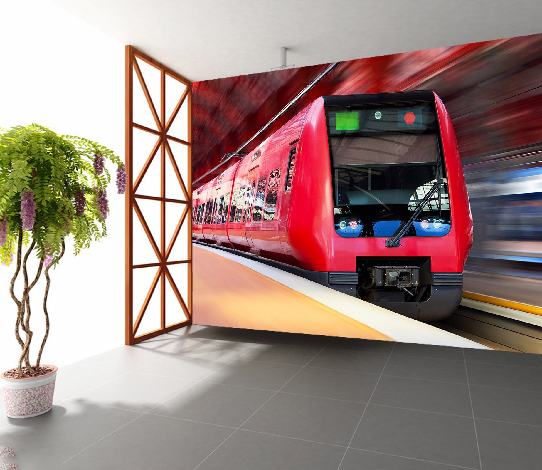 3D Red Train 167 Vehicle Wall Murals Zoe
