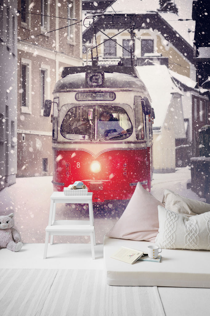 3D White Snow Bus 436 Vehicle Wall Murals Zoe
