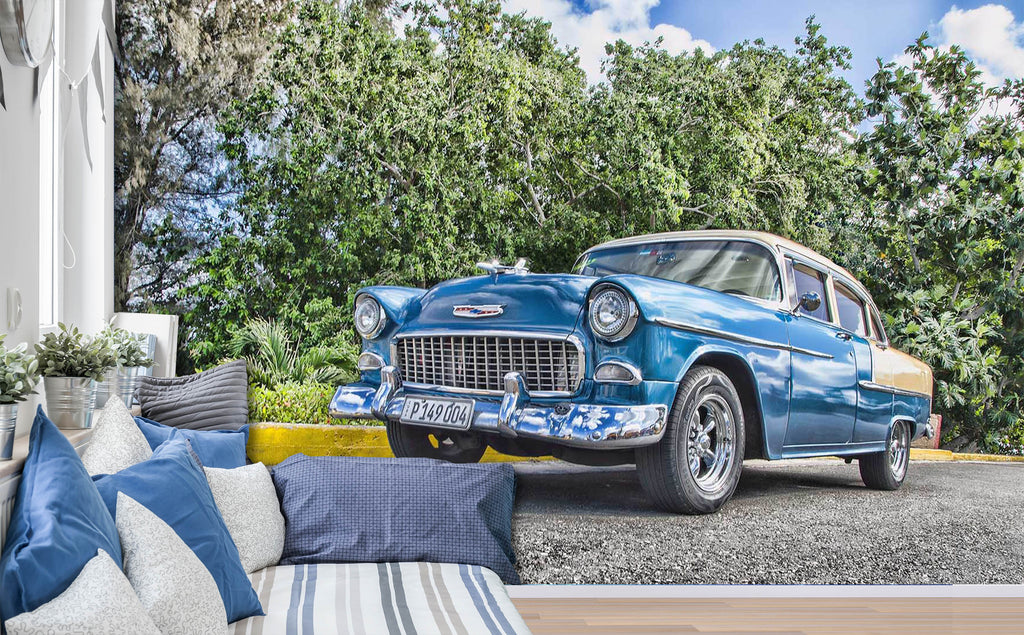 3D Woods Blue Car 095 Vehicle Wall Murals