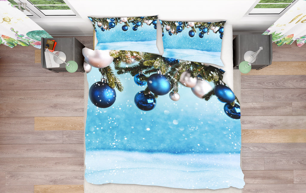 3D Blue White Ball Pendant 53021 Christmas Quilt Duvet Cover Xmas Bed Pillowcases Sinsin