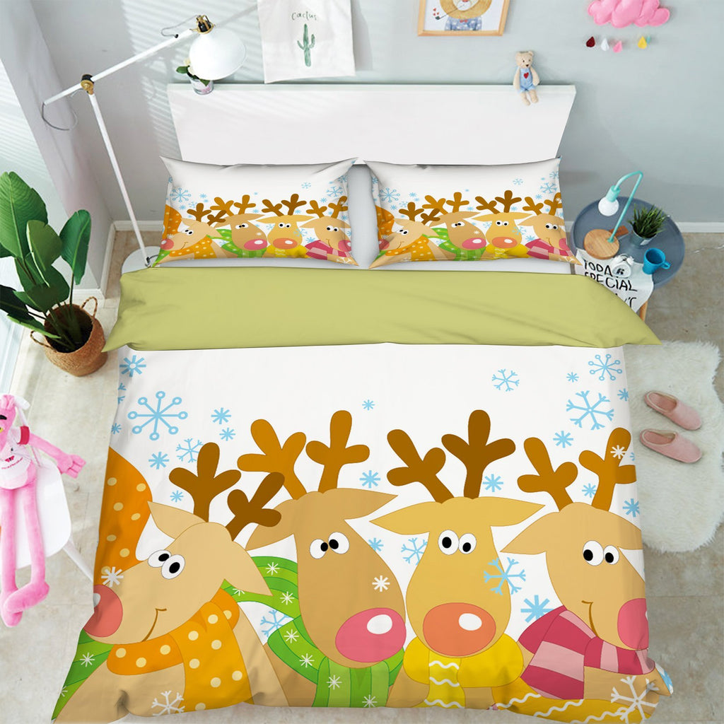 3D Christmas Cartoon Deer 6 Bed Pillowcases Quilt