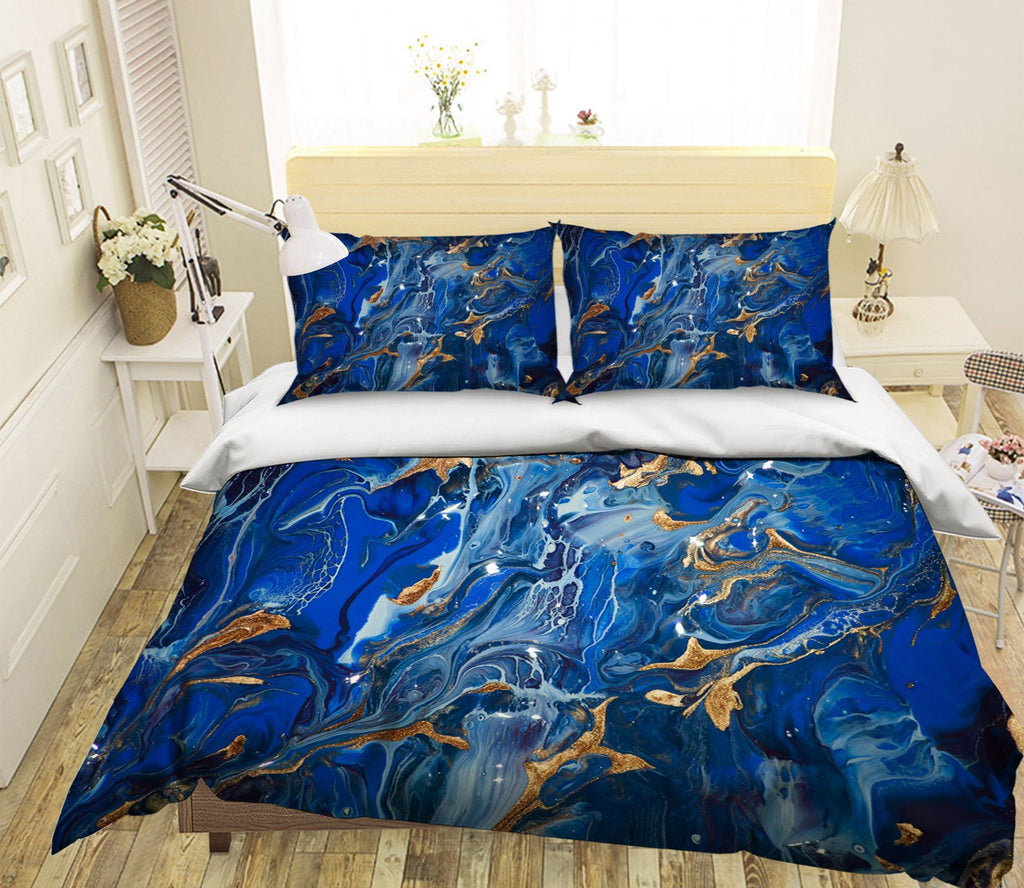 3D Dark Blue Gold Powder 050 Bed Pillowcases Quilt