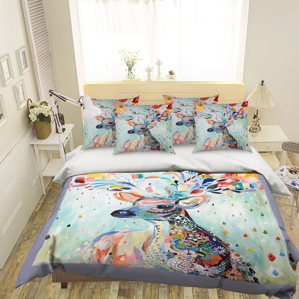 3D Deer Flower 065 Bed Pillowcases Quilt