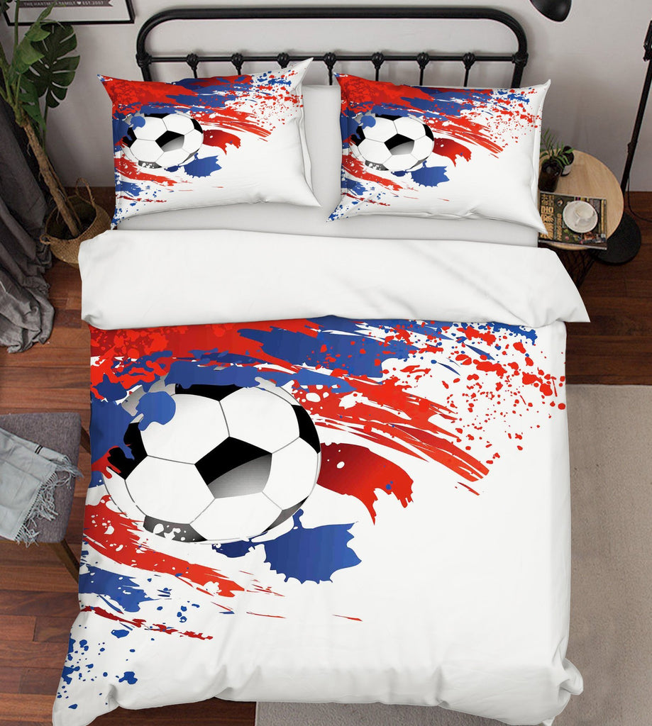 3D Football Red Ink 141 Bed Pillowcases Quilt