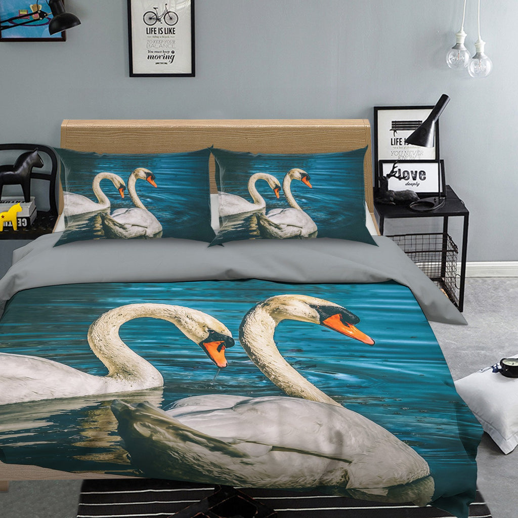 3D Goose Swimming 1998 Bed Pillowcases Quilt