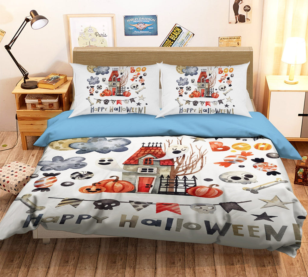 3D House Pumpkin Stars 1201 Halloween Bed Pillowcases Quilt