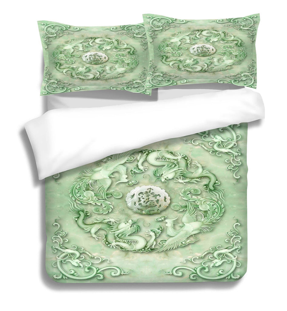 3D Jade Dragon 201 Bed Pillowcases Quilt