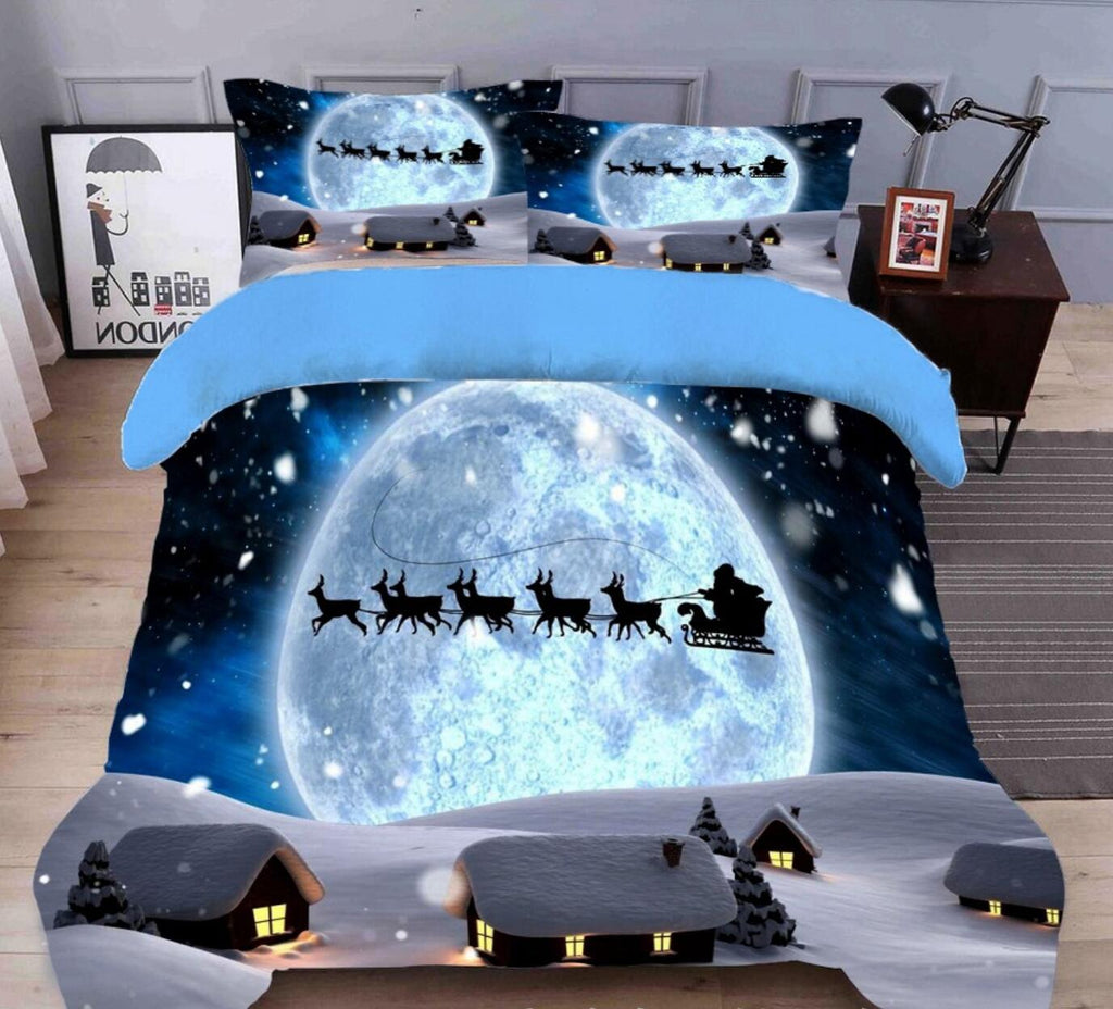 3D Moon Sleigh 31214 Christmas Quilt Duvet Cover Xmas Bed Pillowcases