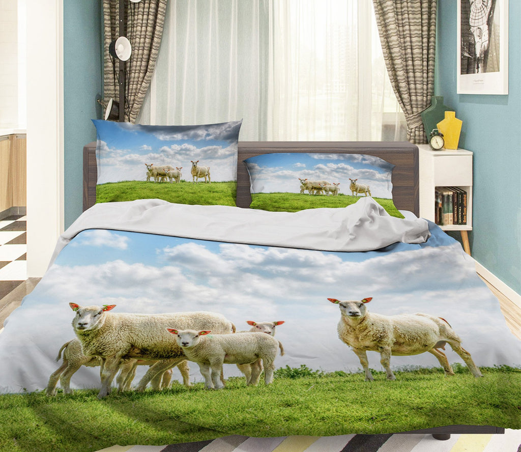3D Sheep Grassland 1993 Bed Pillowcases Quilt