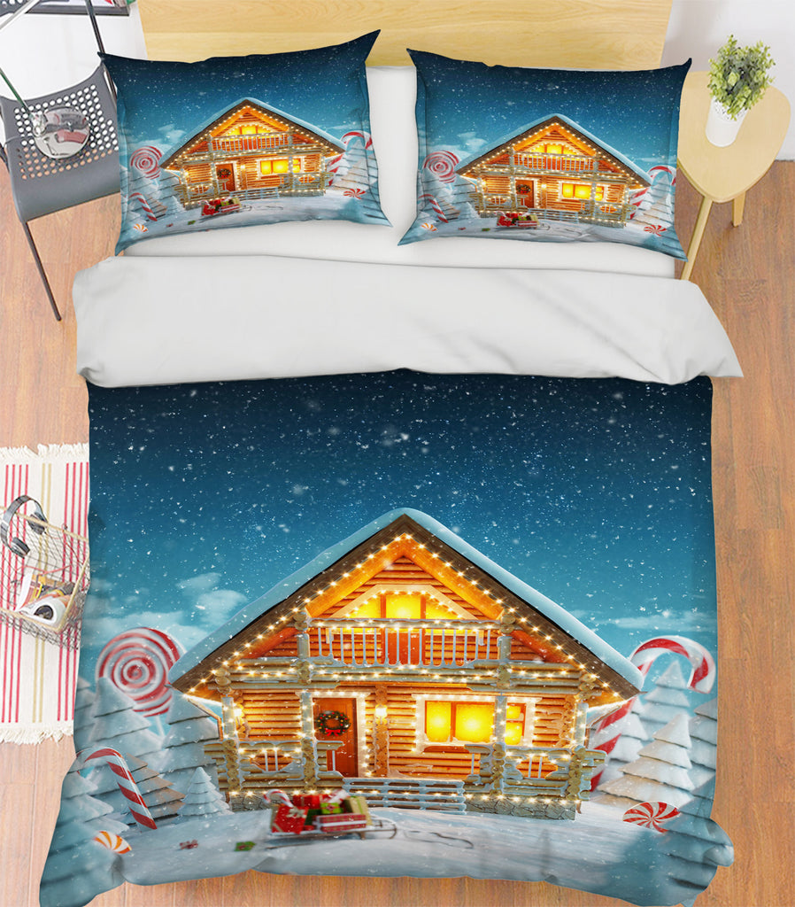 3D Snow House 52151 Christmas Quilt Duvet Cover Xmas Bed Pillowcases