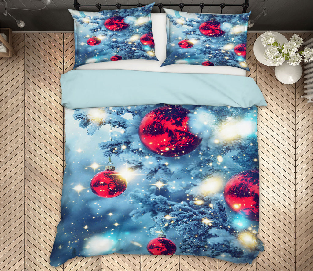 3D Snow Tree Red Ball 52169 Christmas Quilt Duvet Cover Xmas Bed Pillowcases Sinsin