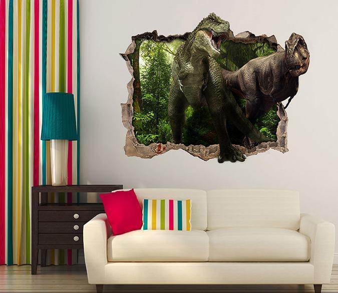 3D Forest Dinosaurs 107 Broken Wall Murals