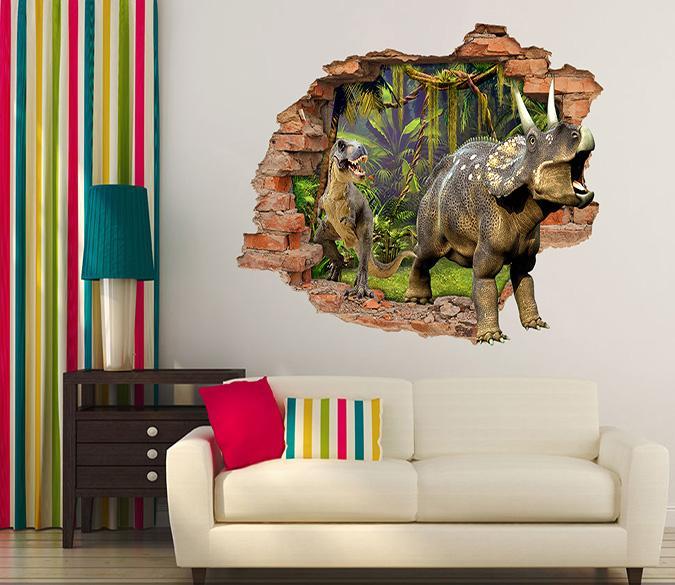 3D Forest Dinosaurs 90 Broken Wall Murals