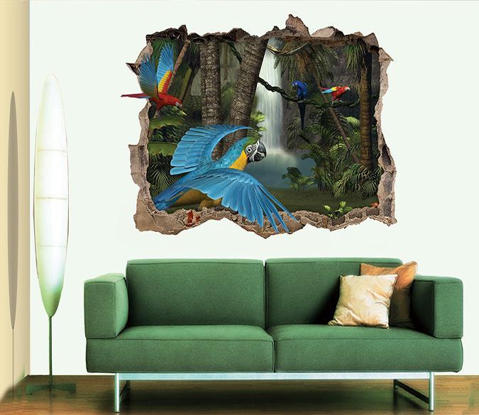 3D Forest Parrots 100 Broken Wall Murals