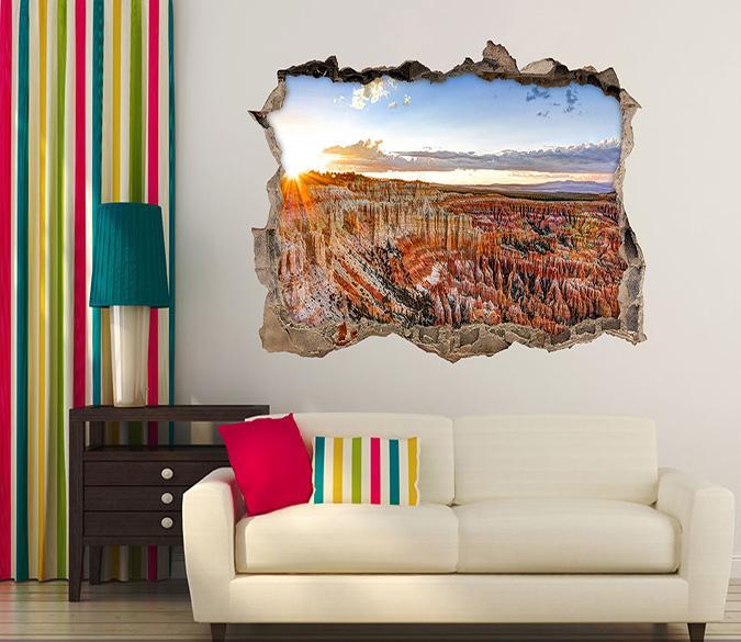 3D Mountains Forest 161 Broken Wall Murals