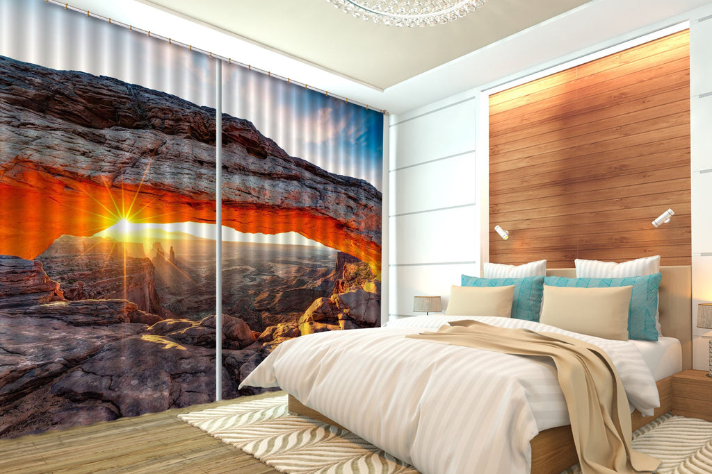 3D Stone Mountain Sunset 121 Curtains Drapes