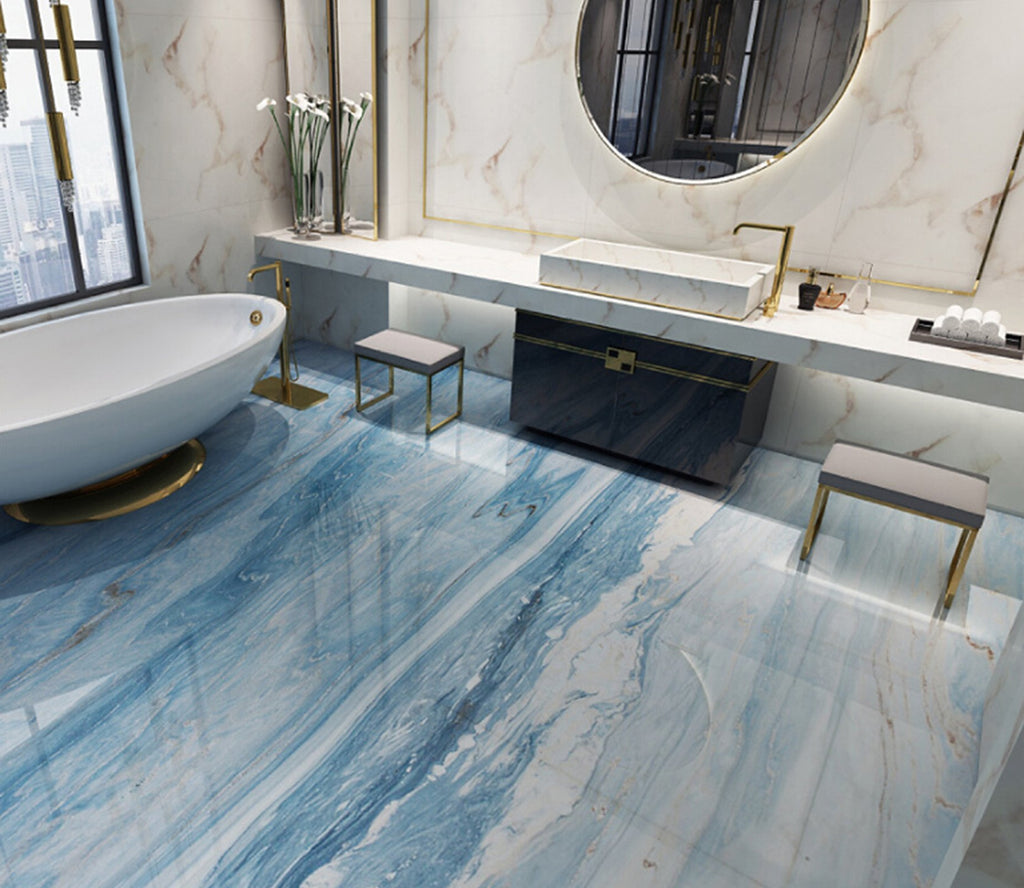 3D Blue Marble Pattern WG318 Floor Mural Self-Adhesive Sticker Bathroom Non-slip Waterproof Flooring Murals