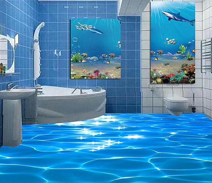 3D Blue Sea WG040 Floor Mural Self-Adhesive Sticker Bathroom Non-slip Waterproof Flooring Murals