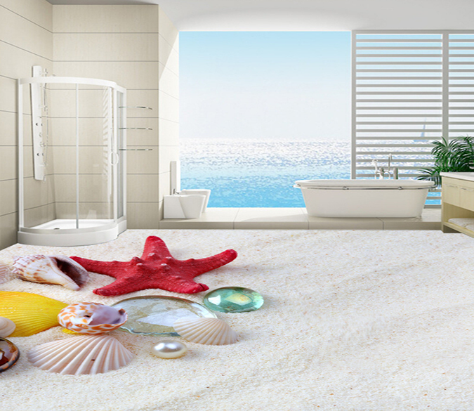 3D Red Starfish 190 Floor Mural Self-Adhesive Sticker Bathroom Non-slip Waterproof Flooring Murals