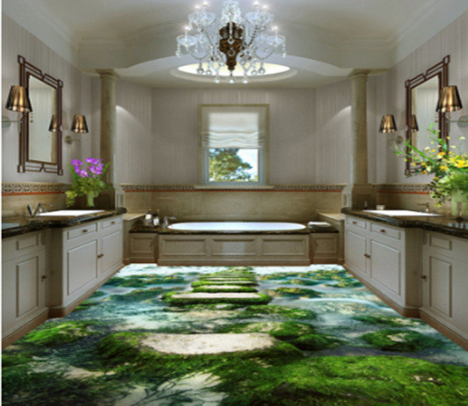 3D Stone Moss 395 Floor Mural Self-Adhesive Sticker Bathroom Non-slip Waterproof Flooring Murals