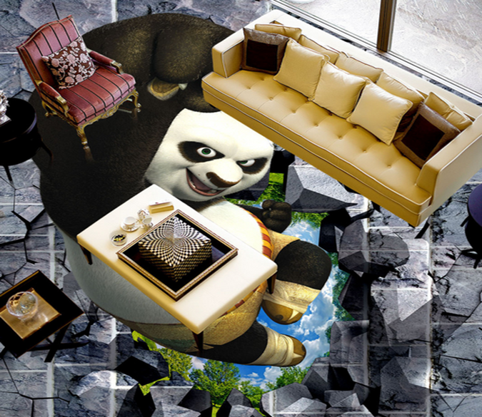 3D Cool Panda 081 Floor Mural Self-Adhesive Sticker Bathroom Non-slip Waterproof Flooring Murals