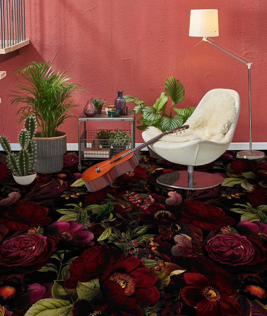 3D Dark Red Flower Bush 10031 Uta Naumann Floor Mural Wallpaper Murals Self-Adhesive Removable Print Epoxy