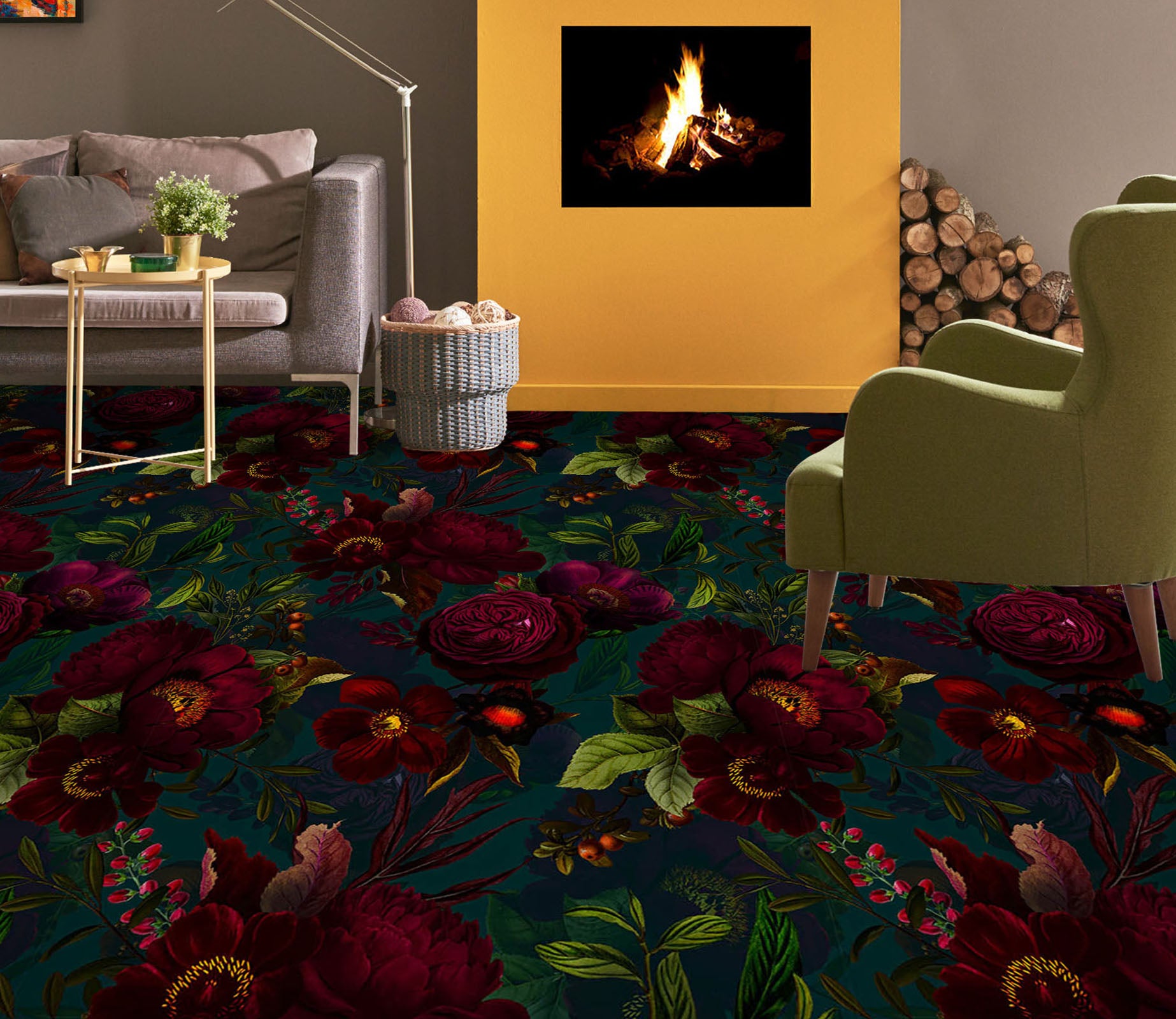 3D Dark Red Flowers 10027 Uta Naumann Floor Mural Wallpaper Murals Self-Adhesive Removable Print Epoxy