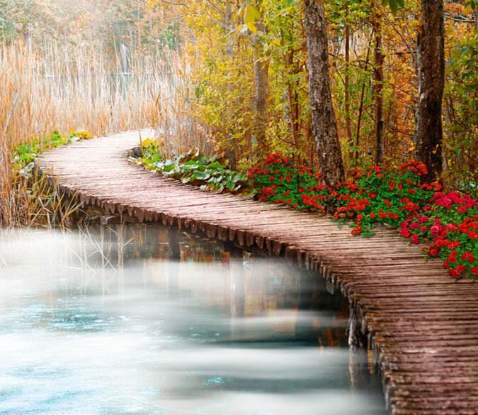 3D Forest Wood Bridge Floor Mural Non-slip, Waterproof  & Removable Rug Mat & Floor Murals