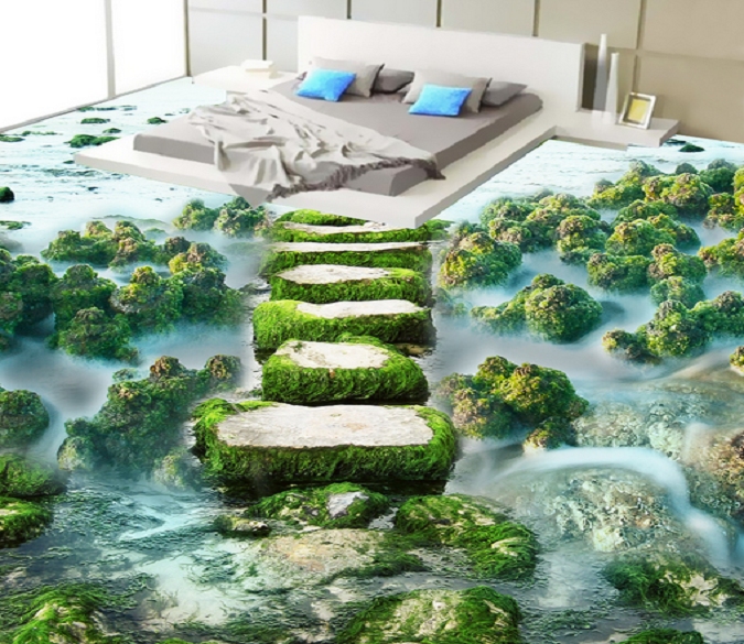 3D Moss Stone 038 Floor Mural Self-Adhesive Sticker Bathroom Non-slip Waterproof Flooring Murals