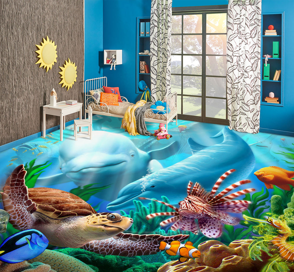 3D Ocean Dolphin Turtle Fish 96222 Jerry LoFaro Floor Mural Wallpaper Murals Self-Adhesive Removable Print Epoxy