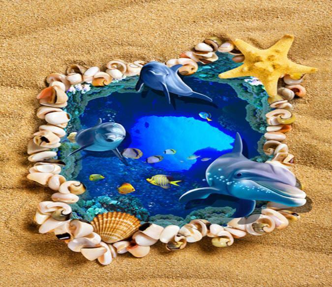 3D Sandy Beach Dolphins Floor Mural Non-slip, Waterproof & Removable Rug Mat & Floor Murals