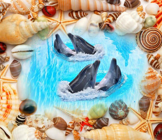 3D Swimming Dolphins Floor Mural Non-slip, Waterproof  & Removable Rug Mat & Floor Murals