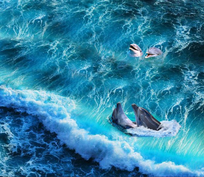 3D Wave And Dolphins Floor Mural Non-slip, Waterproof & Removable Rug Mat & Floor Murals