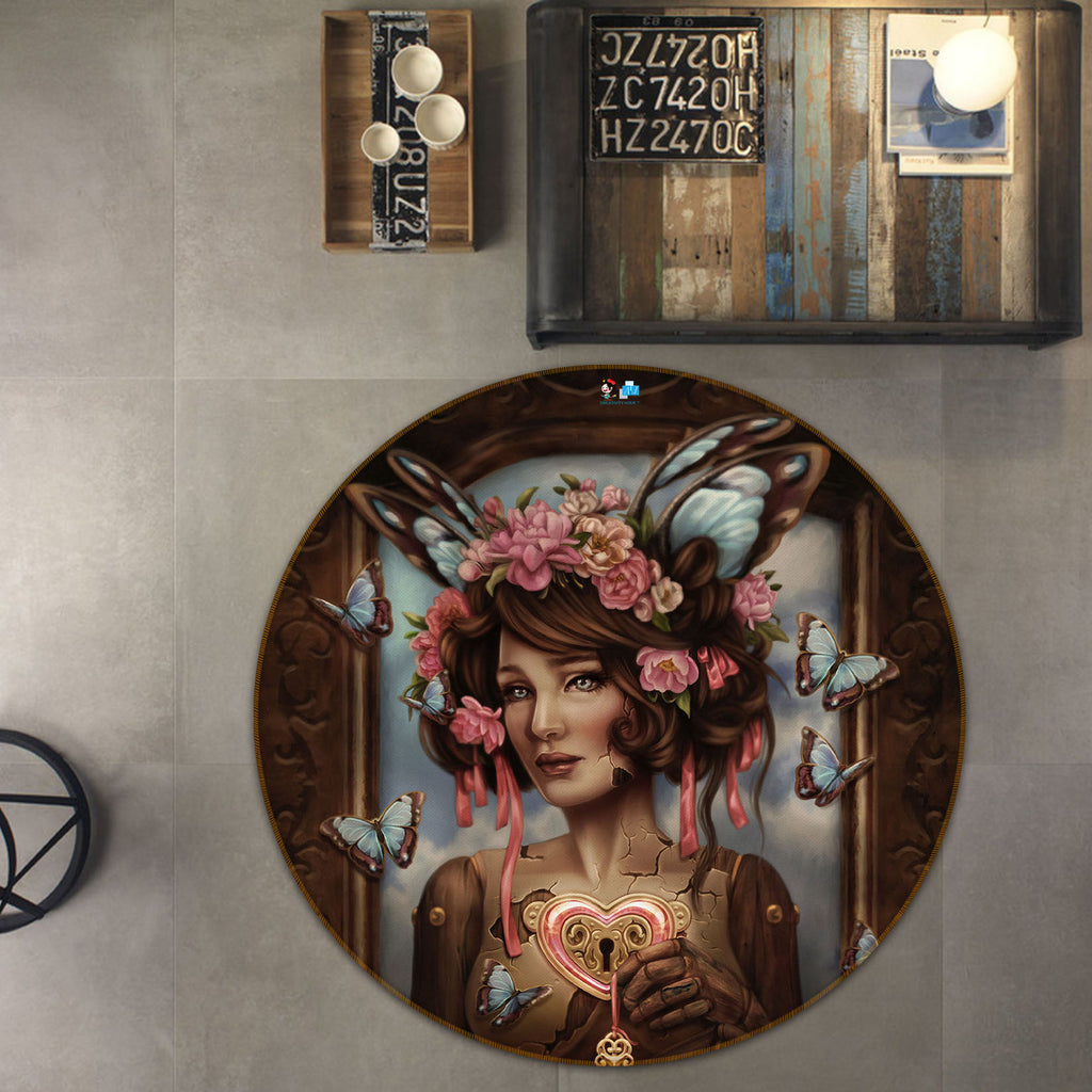 3D Butterfly Woman 8918 Brigid Ashwood Rug Round Non Slip Rug Mat