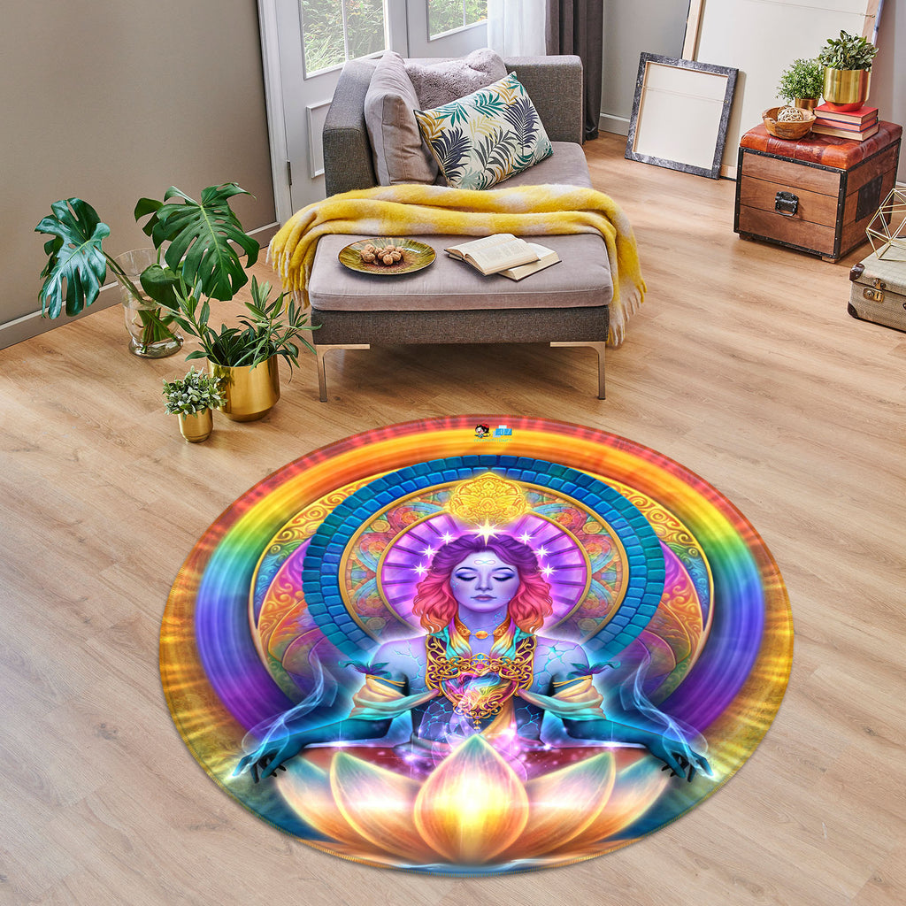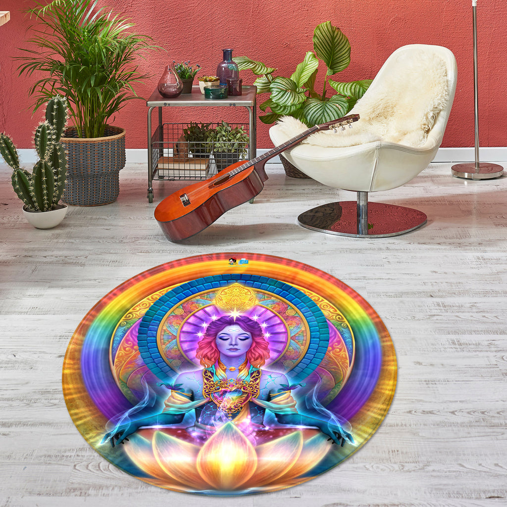 3D Colorful Lotus Woman 8912 Brigid Ashwood Rug Round Non Slip Rug Mat Amy