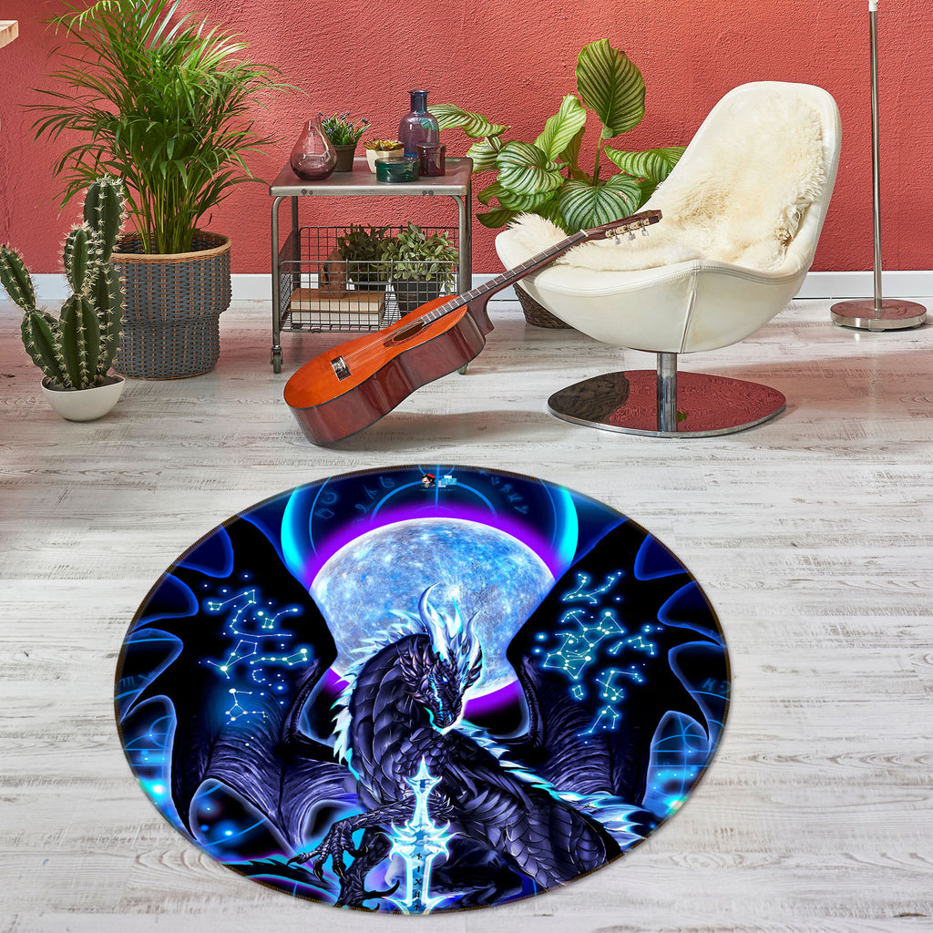 3D Planet Dragon 8367 Ruth Thompson Rug Round Non Slip Rug Mat