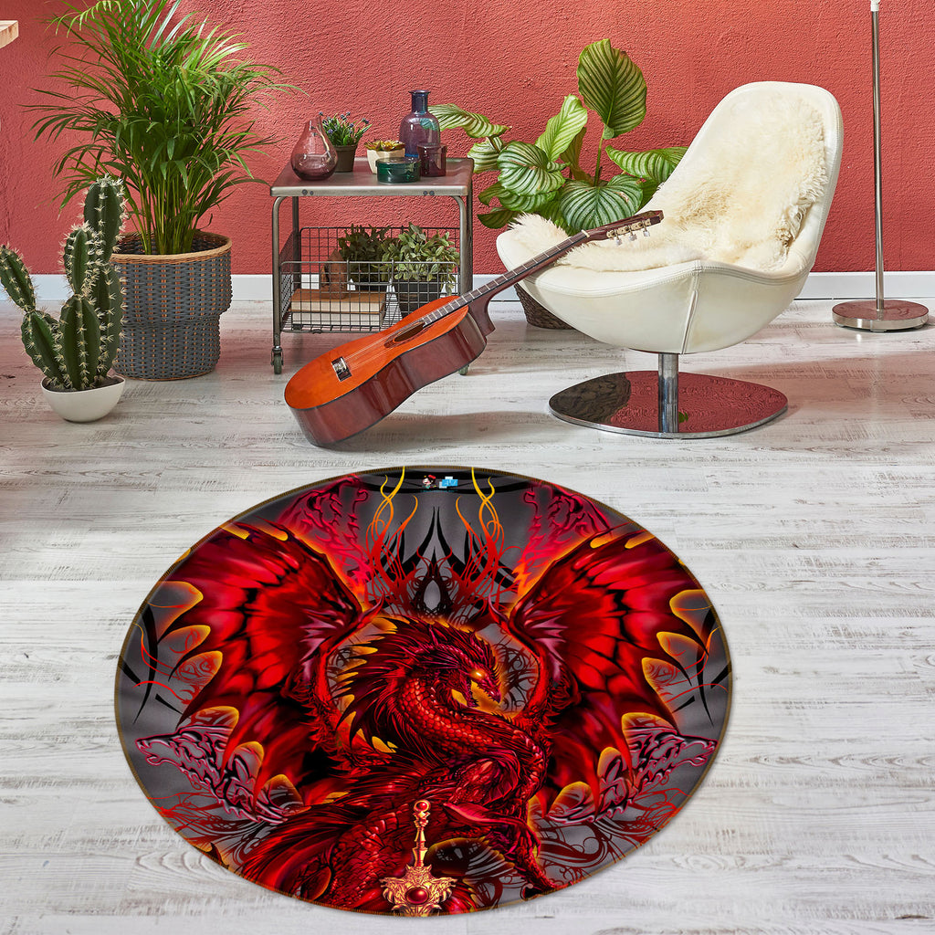 3D Red Dragon 8364 Ruth Thompson Rug Round Non Slip Rug Mat