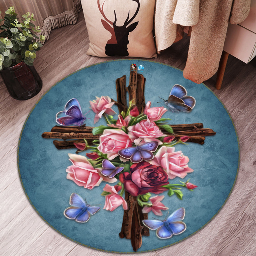3D Rose Butterfly 8893 Brigid Ashwood Rug Round Non Slip Rug Mat Amy