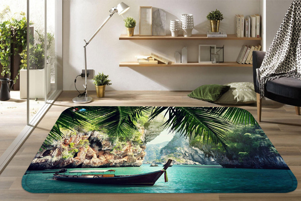 3D Sea Bay Boat 110 Non Slip Rug Mat